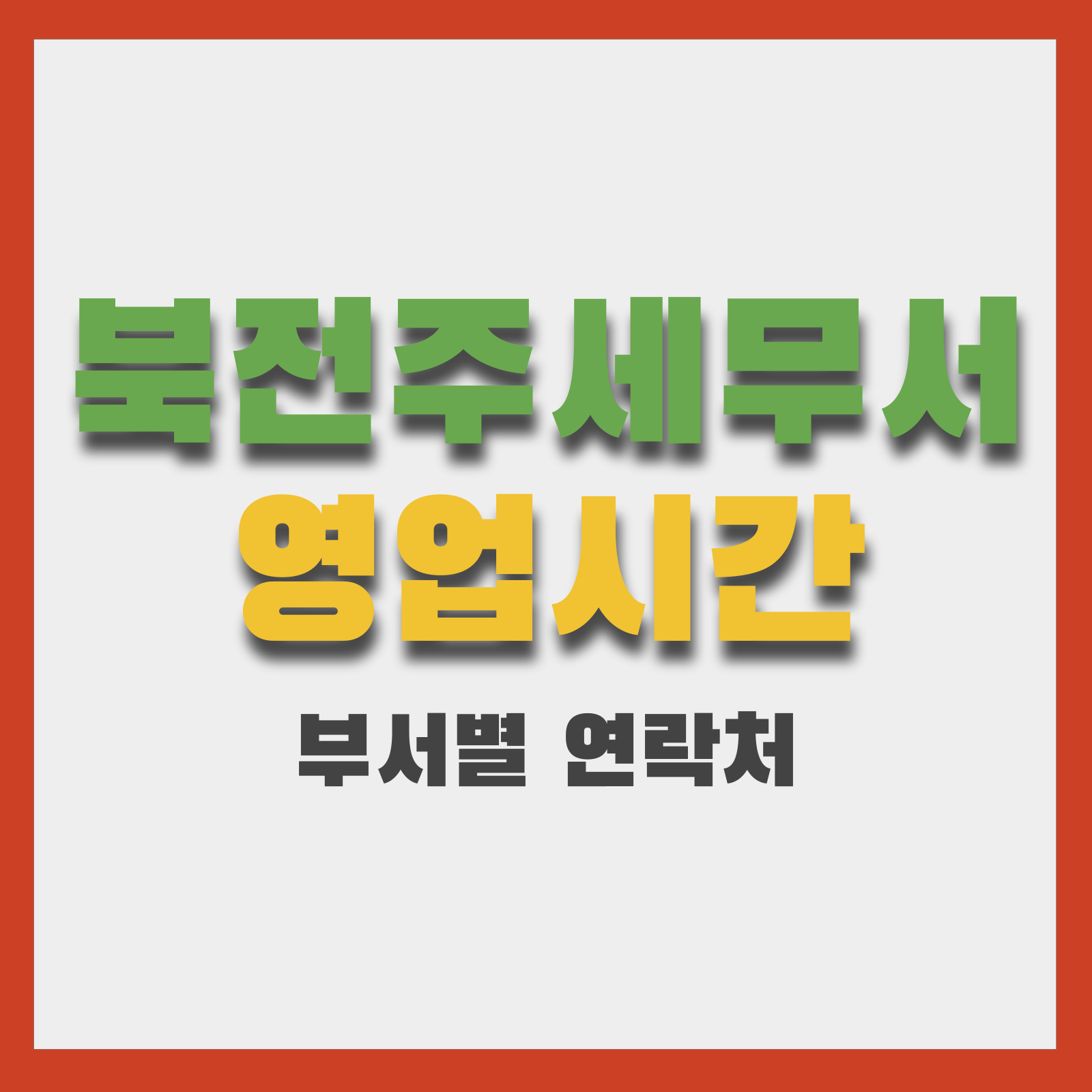 아래 표는 북전주세무서 공식 기본정보 페이지의 최신 표를 기준으로 정리한 것입니다. 부서별 문의 시 아래 번호를 참고하시고, 세부 연락처는 변동 가능하므로 방문 전 공식 페이지 확인을 권장합니다.