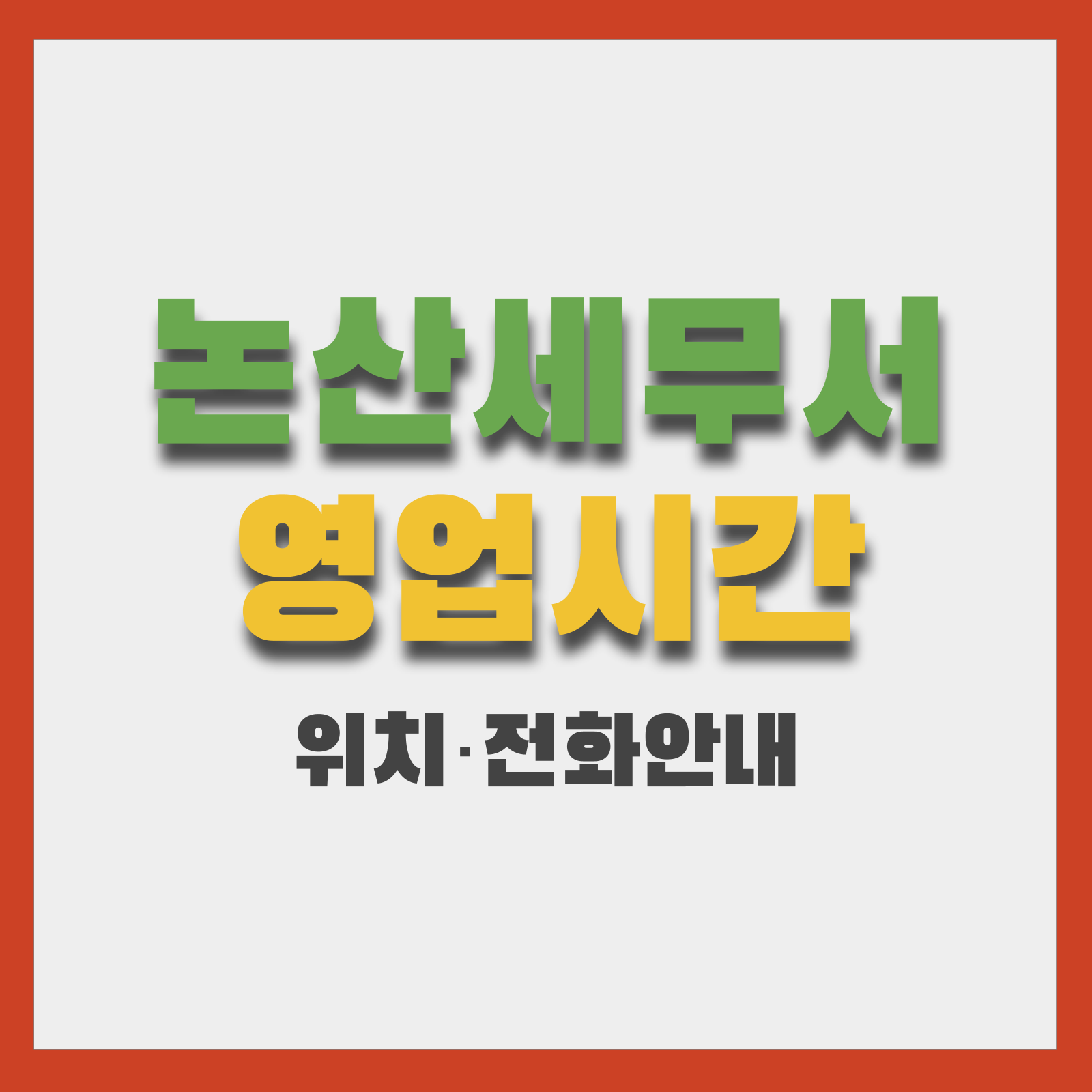 - 본청(논산세무서): 평일 09:00 ~ 18:00 (주말·공휴일 휴무). 점심시간(12:00~13:00)에 방문하면 처리속도가 느릴 수 있음.