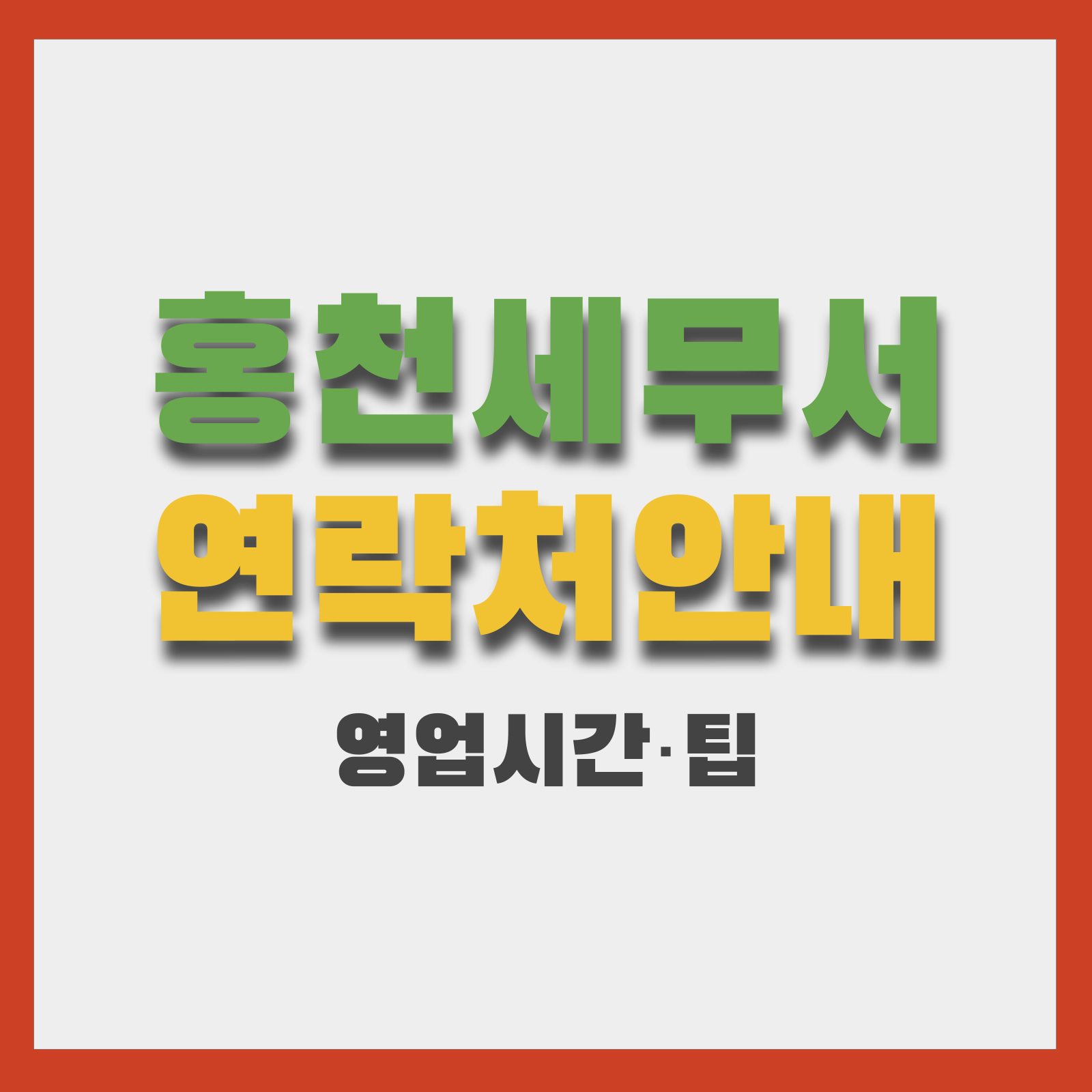 공식 안내 및 부서별 상세 정보는 홍천세무서 공식 페이지에서 확인할 수 있습니다: 홍천세무서 공식 홈페이지
