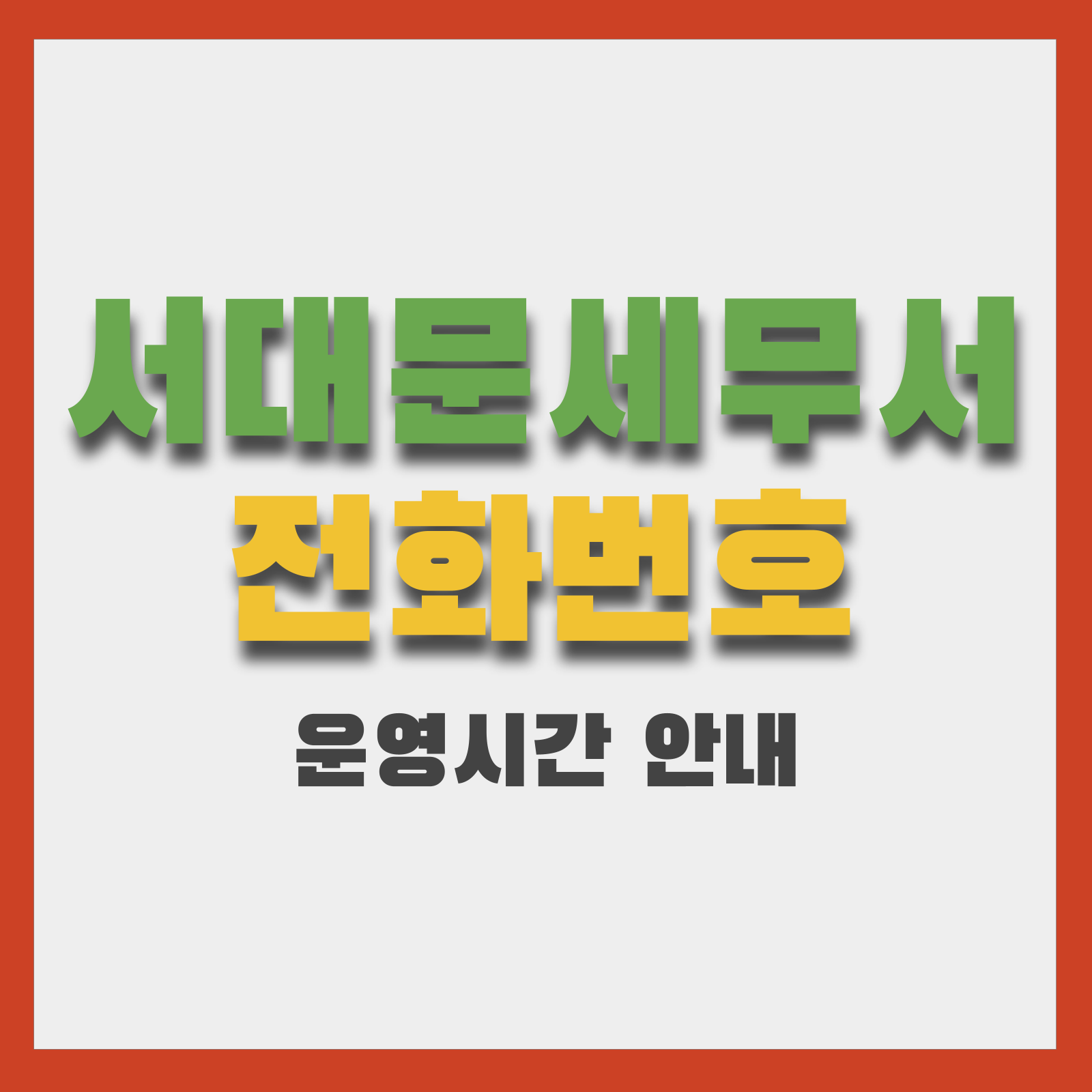 서대문세무서에 방문하거나 전화로 문의하기 전 알아두면 편리한 핵심 정보를 한 곳에 정리했습니다. 본문에서는 서대문세무서의 정확한 주소 및 대표전화, 팩스와 우편번호, 운영시간(평일·점심시간·휴무일), 관할지역, 접근 방법(지하철·주차 안내), 주요 부서별 연락처와 업무 안내, 온라인 서비스(홈택스) 및 자주 묻는 질문(FAQ)까지 실무에 바로 활용할 수 있도록 구성했습니다.