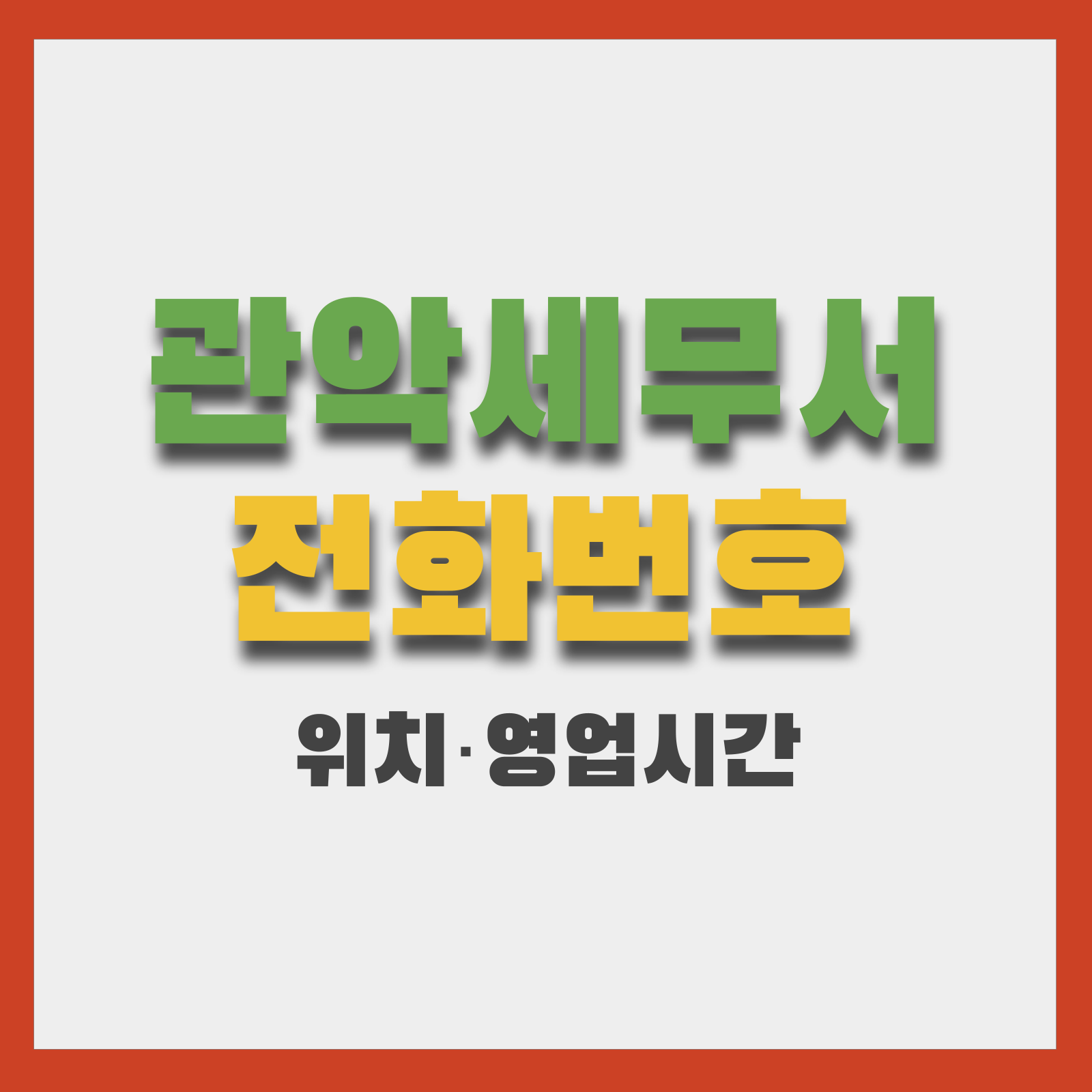 관악세무서 관련 전화번호·영업시간·부서 연락처는 관악세무서 공식 홈페이지 및 홈택스 기준으로 최신화한 정보입니다. 방문 전 공식 홈페이지 또는 홈택스에서 예약·접수 방법을 확인하면 보다 원활한 민원 처리가 가능합니다. 긴급 상담은 국세상담번호 126(지역번호 없이)도 함께 이용하세요.