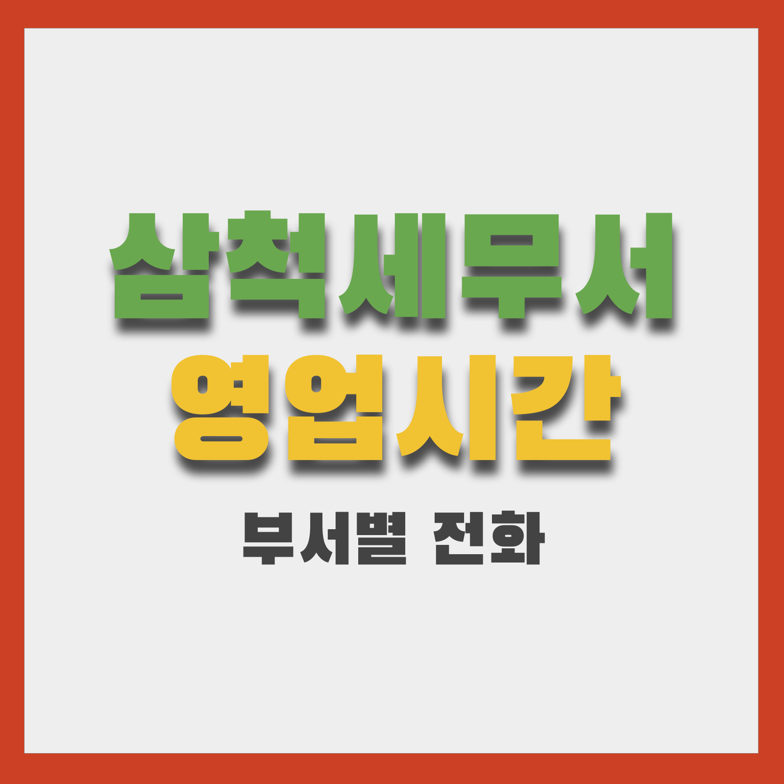 위 정보는 2025~2026년 기준 공식 국세청·삼척세무서 자료를 종합하여 정리한 내용입니다. 삼척세무서 위치(교동로 148), 우편번호(25924), 대표전화(033-570-0200) 및 부서별 연락처는 공식 페이지에서 수시로 업데이트되므로 중요한 민원·신고 전에는 공식 홈페이지를 재확인하시기 바랍니다.