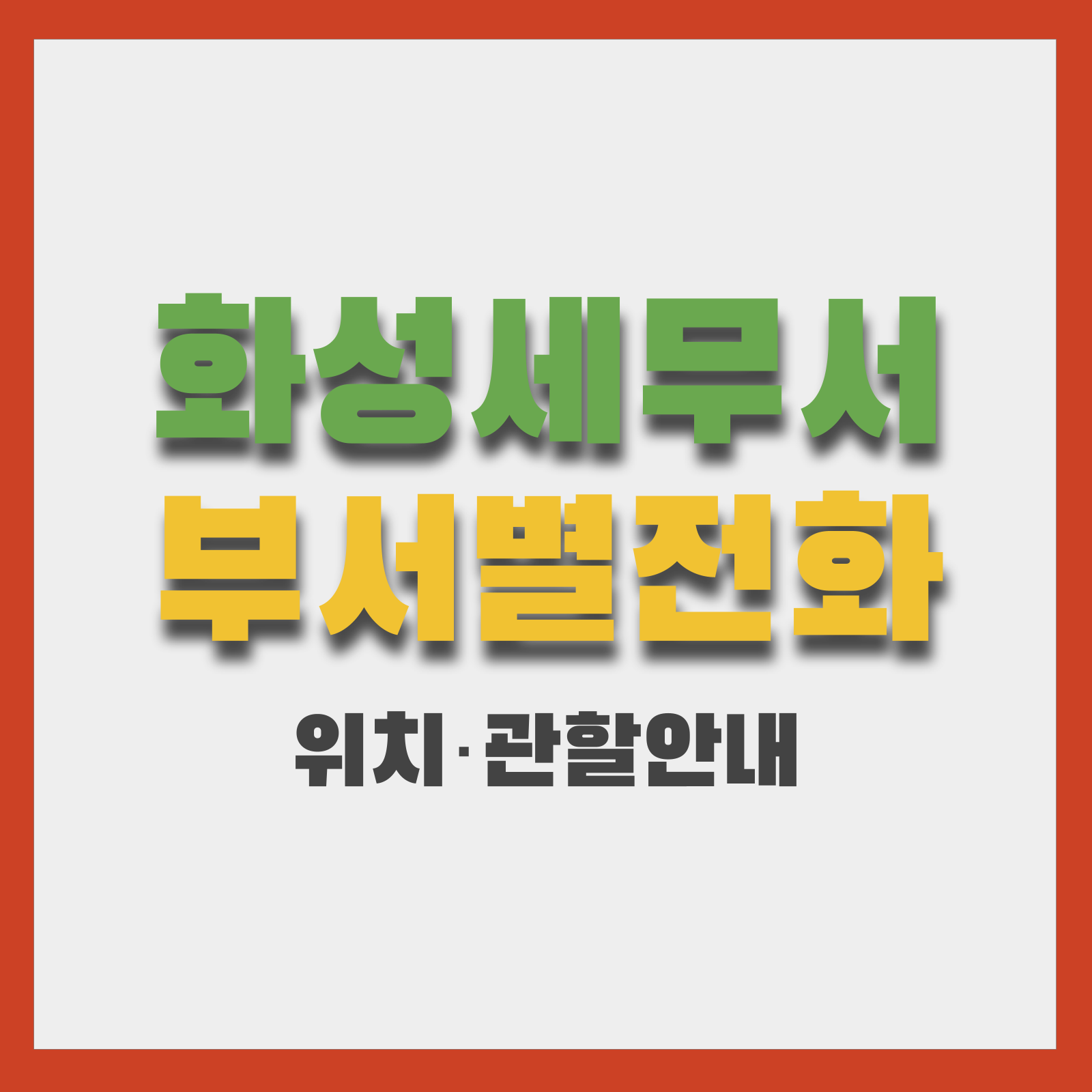 아래 연락처는 화성세무서(본서) 기준이며, 표기된 내용은 2026년 2월 기준 공식 자료입니다.