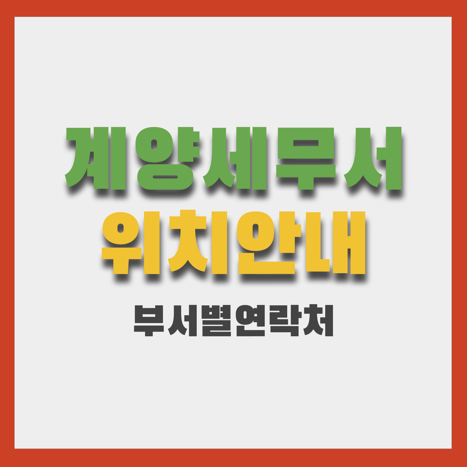 아래 표는 계양세무서 공식 안내를 기반으로 주요 부서의 전화번호와 팩스, 담당업무를 정리한 것입니다. 특정 업무 담당자 연결이나 상세 문의는 대표번호(032-459-8200) 또는 국세상담센터(126)를 이용하십시오.