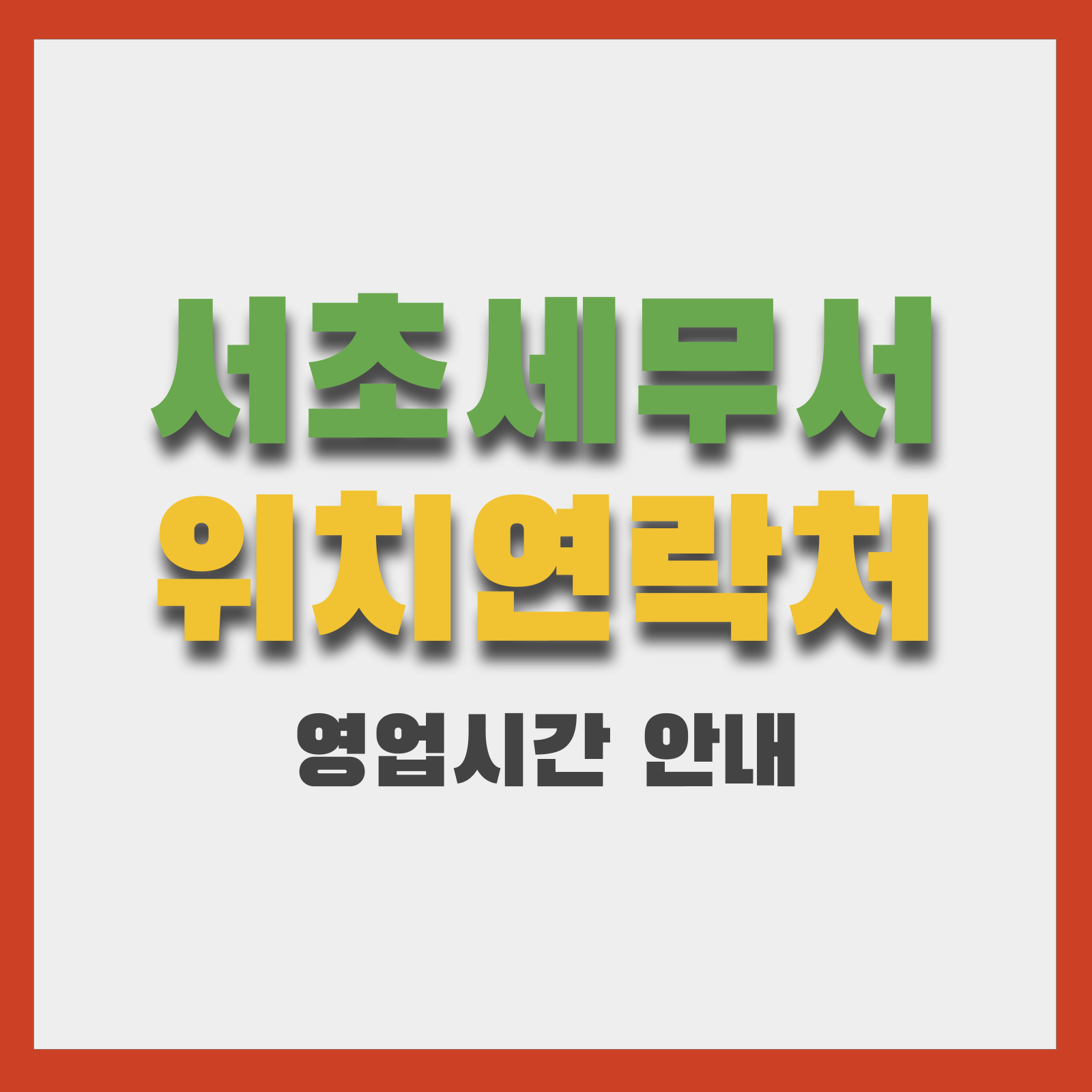 서초세무서는 서울 강남권의 주요 세무 업무를 담당하는 관할 기관입니다. 이 글에서는 서초세무서의 정확한 위치(오시는 길), 대표 연락처와 팩스, 부서별 전화번호(담당 업무와 층수 포함), 영업시간 및 관할구역, 방문·전화 이용 팁과 2026년 최신 업데이트 내용을 한눈에 확인할 수 있도록 정리했습니다. 방문이나 전화 문의 전에 반드시 본 글의 연락처와 운영시간을 확인하시기 바랍니다.