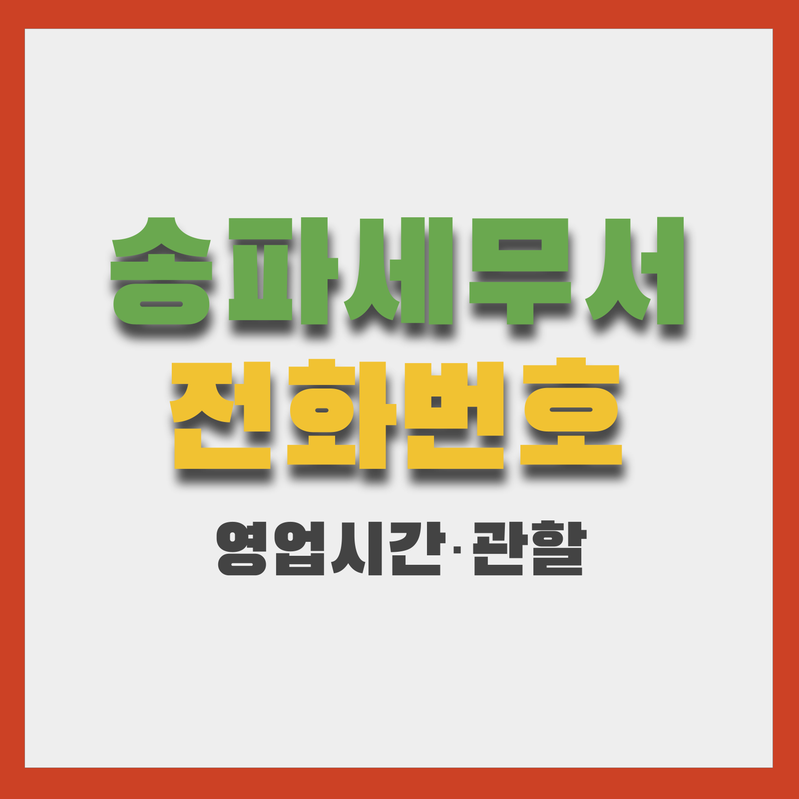 송파세무서는 서울 송파구 중남부 지역(송파동·석촌동·가락동·문정동·장지동·거여동·마천동 등)을 관할하는 국세청 소속 기관입니다. 이 글에서는 송파세무서의 정확한 위치(주소), 대표 연락처와 부서별 전화번호 및 팩스, 방문·영업시간 안내, 무료상담 및 최근 공지(부가가치세 납부 등)까지 2026년 기준 최신 정보를 한눈에 확인할 수 있도록 정리했습니다. 관공서 방문이나 전화 문의 전 필수로 확인해야 할 핵심 정보와 이용 팁을 포함합니다.